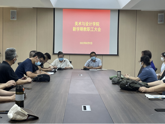 8月9日,美术与设计学院2022年秋季新学期教职工大会在艺术楼215会议室召开,美术与设计学院院长张瑞瑞,党总支书记袁军,教学副院长王伟,特聘教授及全体教职工参加了会议。会议由党总支书记袁军主持。