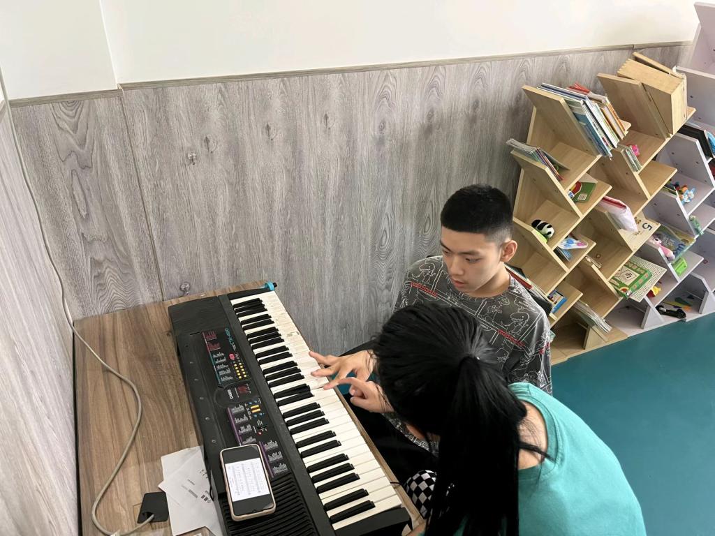 我是20级音乐学本科4班的曹永静,我参加的志愿活动是孤独症幼儿陪伴,我主要负责的是韵律和电子琴课程。因为他们的特殊在教时比对普通孩子更费心神,要跟他们有效交流和正确示范。工作期间我一共服务了18位孩子,我们每天的主要工作就是早上把小朋友从宿舍领回教室,吃早餐,八点半开始上课,中午餐后活动半小时送回宿舍午休,下午接回来上课,晚上五点半下课晚餐时间。在工作快结束的时候我们还举办了活动,让孩子们都登台演出。