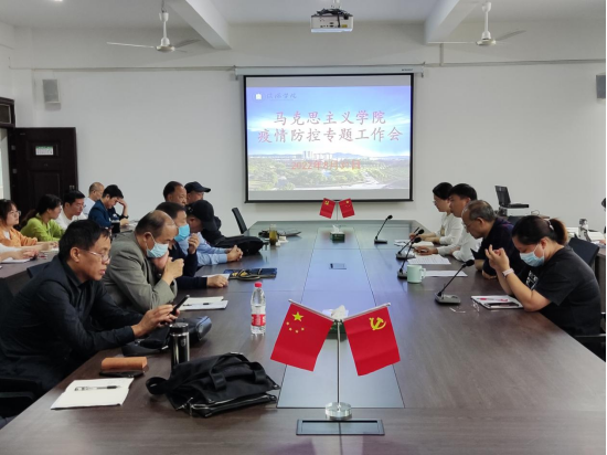 为深入贯彻落实疫情防控工作精神,提高疫情防控意识,马克思主义学院全体教职工于8月31日下午在413会议室召开疫情防控专题工作会。会议由党总支副书记陈金强主持,名誉院长及学院全体教职工参加会议。