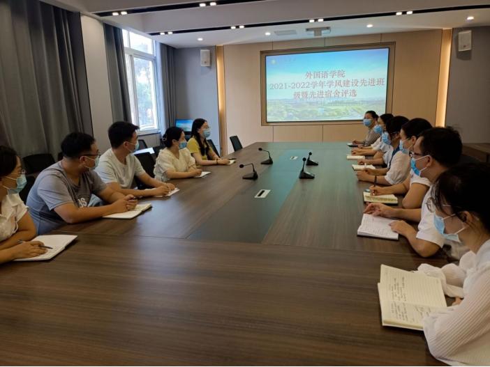 为积极培育和践行社会主义核心价值观,充分发挥先进典型的示范引领和价值导向作用,着力培养担当民族复兴大任的时代新人、弘扬共筑美好生活梦想的时代新风,进一步推进校园精神文明创建,根据校学字〔2022〕19 号《信阳学院学风建设先进集体评选办法》( 2022年修订版)文件精神要求,外国语学院于9月8日中午在外语楼110会议室开展2021-2022年度学风建设先进集体评选活动。