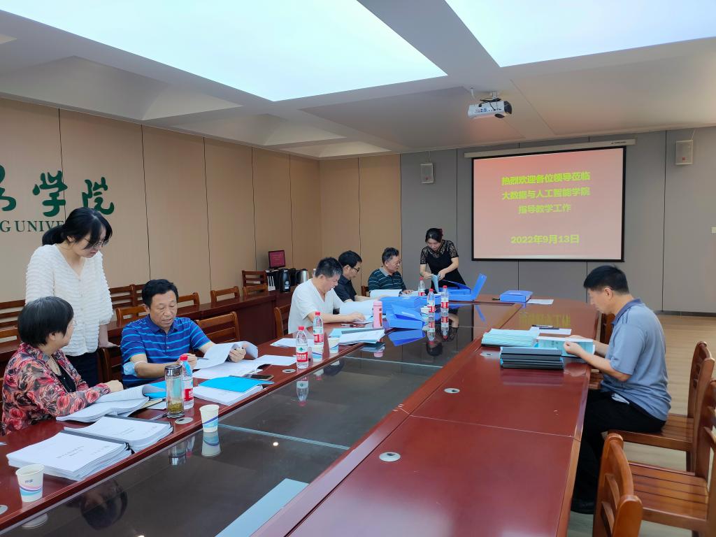 为确保新学期教学工作正常进行,规范教学管理工作,9月13日下午,学校督导中心检查组的专家莅临大数据与人工智能学院进行期初教学检查。大数据与人工智能学院院长邬长安、教学副院长黄俊、教学秘书贾彦茹及教研室主任参与了本次检查。