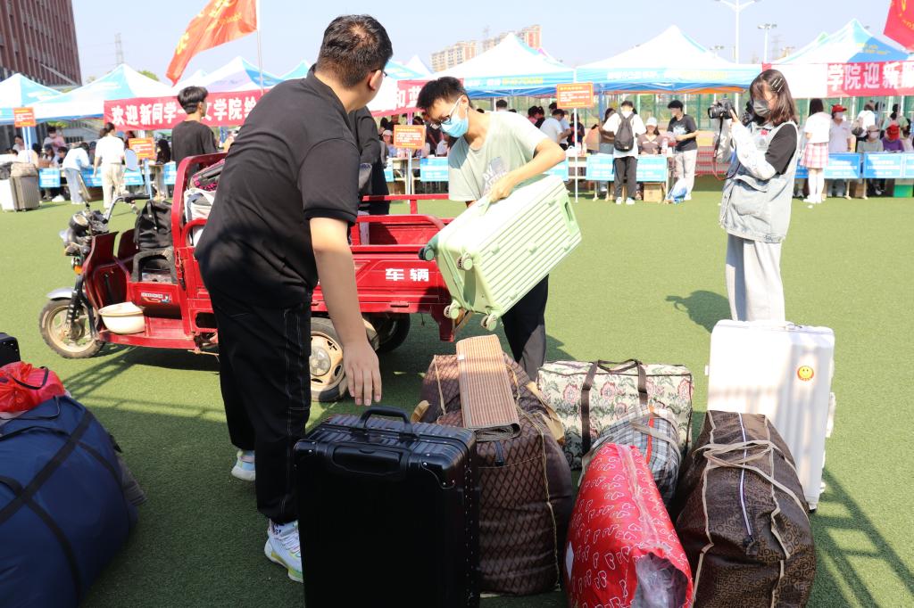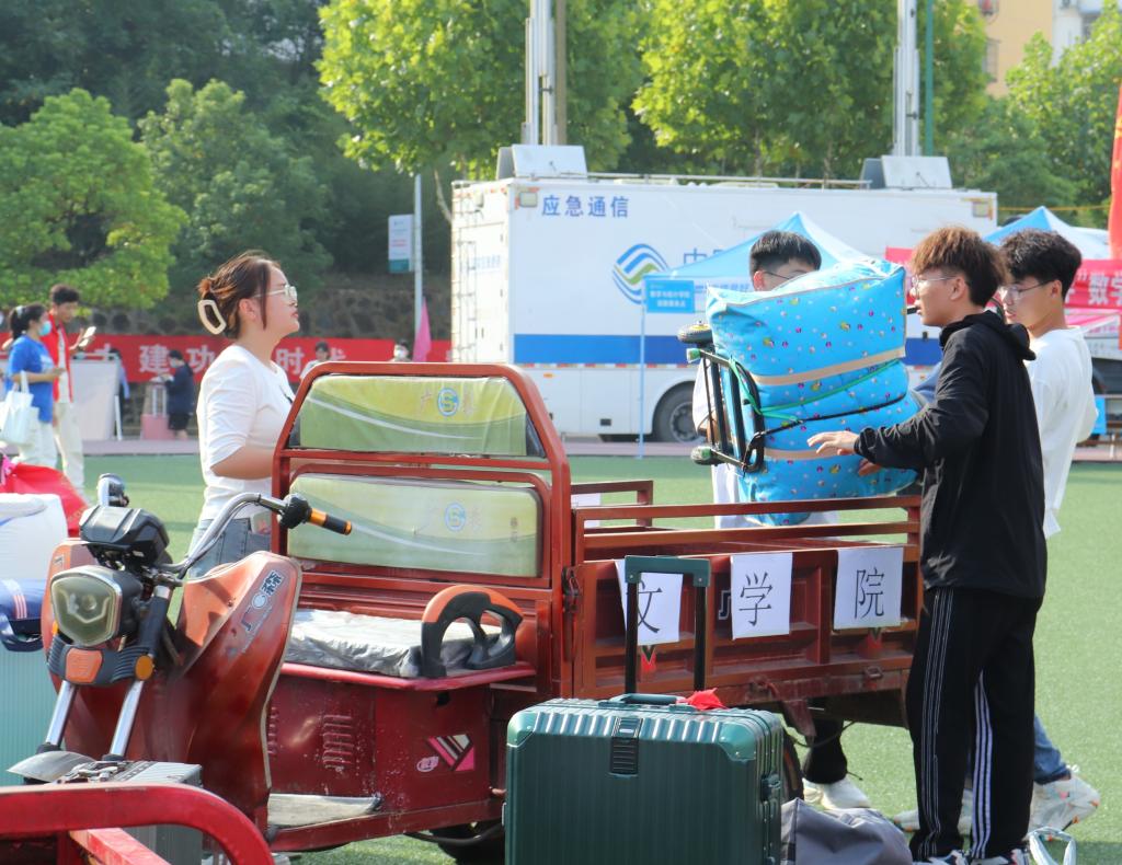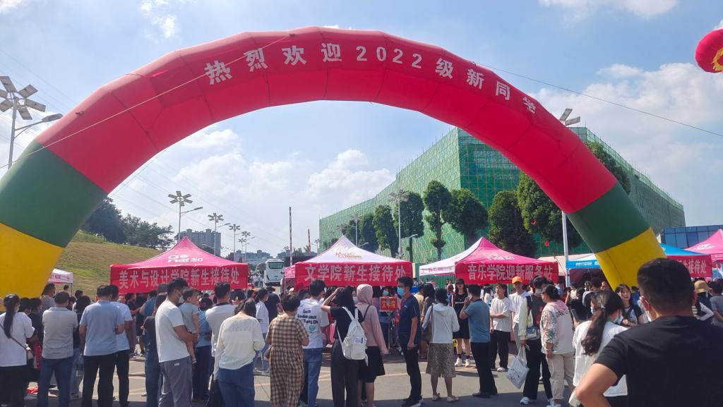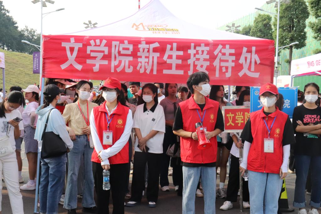 桂子月中落,天香云外飘。9月17日,伴随着桂花的清香,文学院迎来了来自全国各地的2022级新生。为迎接新生,我院前期专门召开迎新工作专题会,进行了严密的筹备工作。迎新当天,文学院院长毛正天、党总支书记李赟、学工秘书徐远东、行政秘书陈俊、全体辅导员、全体学生干部和班级志愿者在学校北大门和校内迎新广场接待新生,协助新生安排相关事宜,尽心尽力,热情满满。