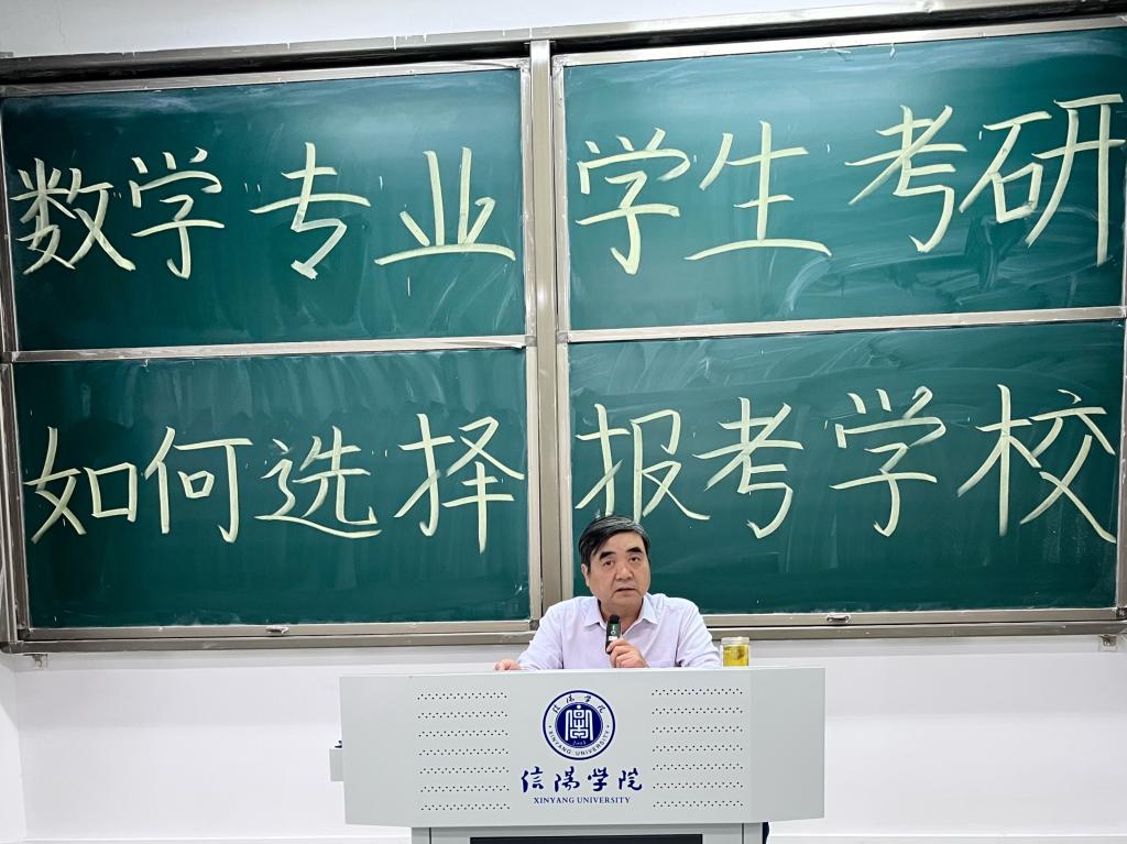 2023年全国硕士研究生入学考试报名即将开始,为帮助学生全面了解当前考研形势和研究生招生政策,明确考研方向和发展前景,9月20日,数学与统计学院在数计楼105教室举办题为《数学专业学生考研如何选择报考学校》的考研报告,主讲人为数学与统计学院院长俞迎达教授。学院党总支副书记刘颖方、学工干事田媛、全体辅导员、教研室主任及2019级考研学子参加此次报告会。