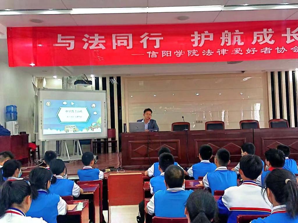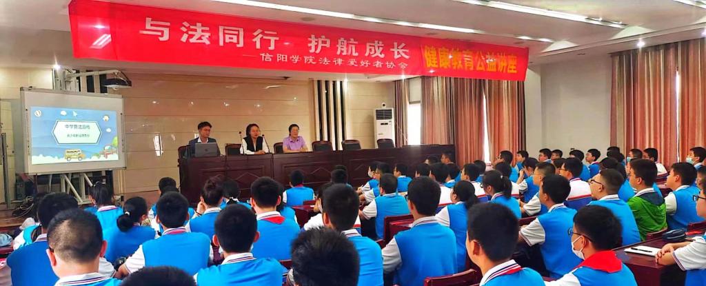 9月21日上午,受信阳市浉河中学邀请,社会科学学院法学专业教师胡晶、余兴旺老师为浉河中学的师生开展了一场别开生面又富有启迪的法律知识讲座。