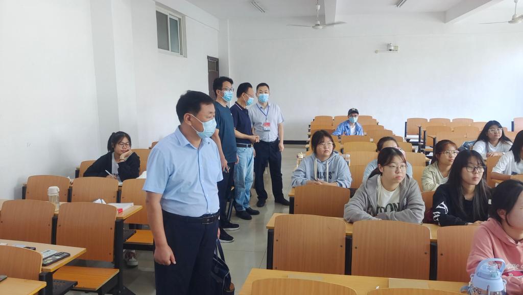 张永志一行首先检查了人文楼的课堂教学情况,包括教师及学生出勤、无手机课堂秩序、学生上课抬头率等,重点检查了师生到课教学情况、教学设施设备运行、教学环境以及教学保障情况。