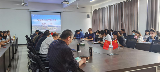 9月20日下午,马克思主义学院召开了全体教职工会议,名誉院长、党总支副书记陈金强、执行院长朱新荣及全体教师参加了会议。陈金强主持了会议。