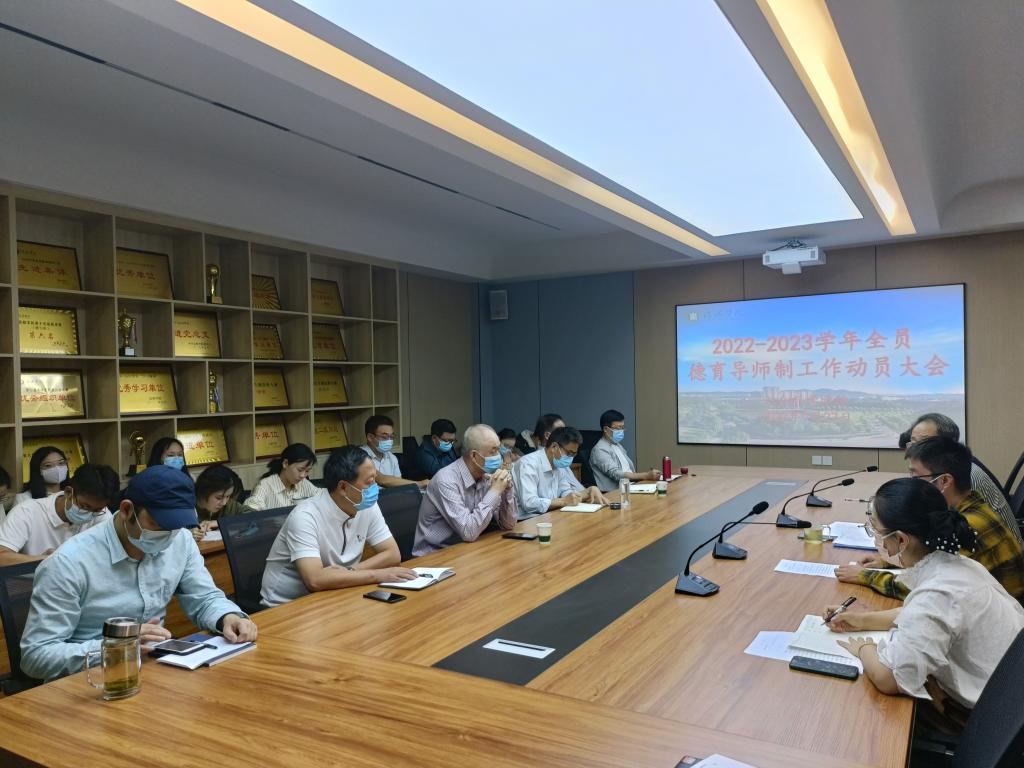9月27日下午,社会科学学院在社科楼419会议室召开了2022-2023学年全员德育导师制工作动员大会。学院领导班子成员和全体教师参加了本次会议。会议由胡志国主持。