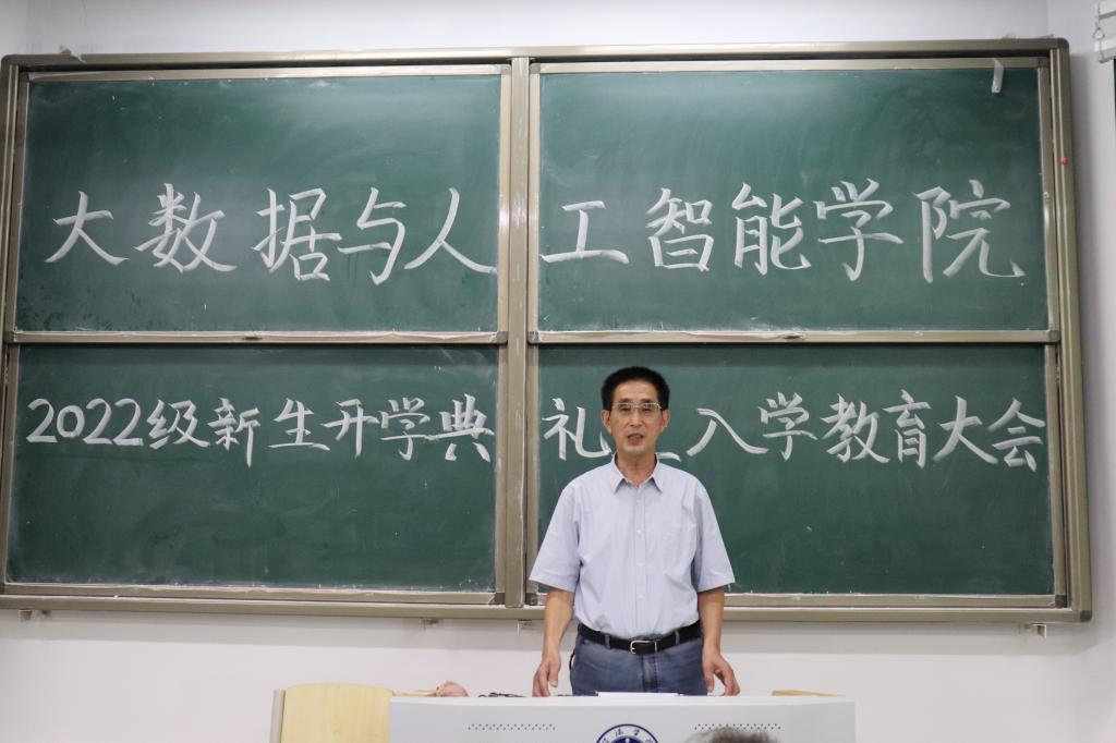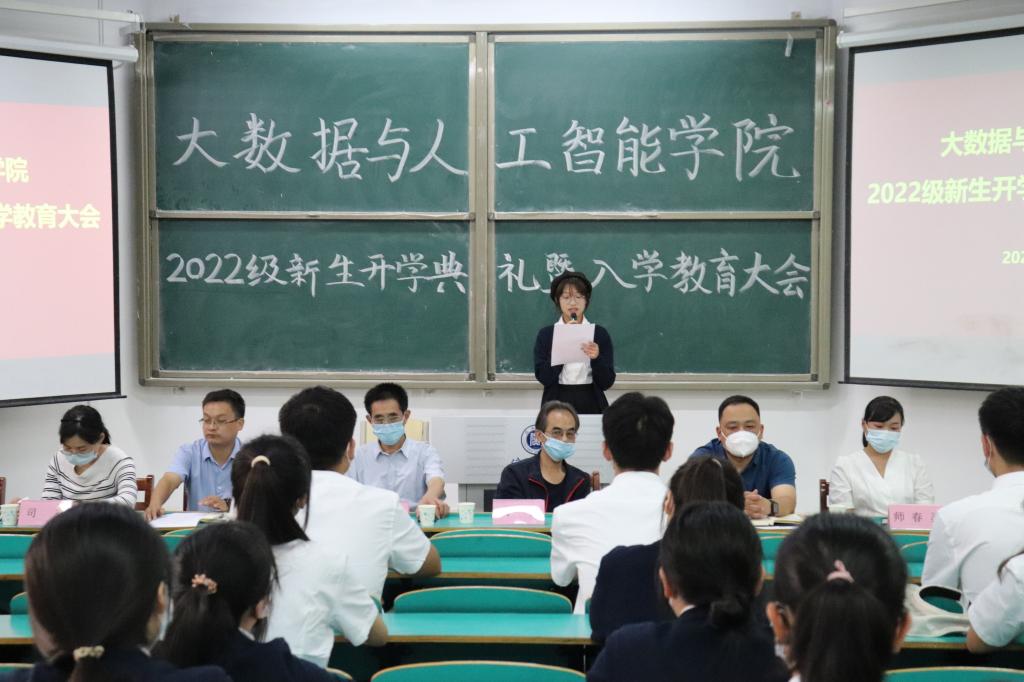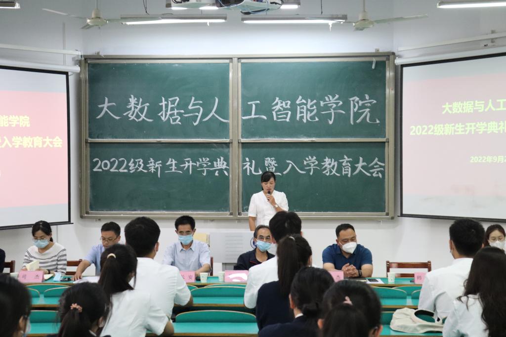 9月28日下午,大数据与人工智能学院2022级新生开学典礼暨入学教育大会在数计楼106(主会场)、103(分会场)、107(分会场)举行,会议是采取线上线下相结合的方式开展。大数据与人工智能学院院长邬长安、党总支副书记毛凤翔、教学副院长黄俊,学工干事鄢杰,行政干事司杰,辅导员代表张雯、教师代表师春灵和2022级全体新生参加了会议。会议由毛凤翔主持。