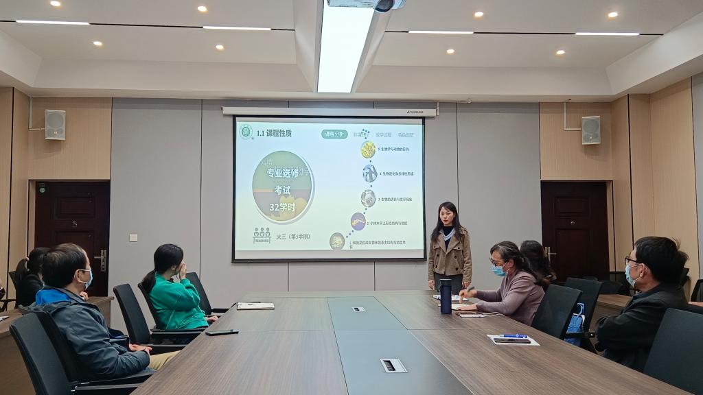说课比赛内容包括教学目标分析、教学过程描述、教学创新点,要充分体现先进的教育理念,注意突出特色、亮点与创新点。其中,张秋平老师在《有机合成路线设计》课程说课中,将合成技术、合成基本原理这条“科学线”与知识传授、能力培养、价值引领这条“育人线”同向同行、协同育人,实现了课程教学目标。冯端端老师以《汽车发动机构造实训》课程入手,从教学策略、教学过程、教学反思等方面娓娓道来,重点围绕汽车发动机构造向大家展示了自己的创新点。刘仁植、臧明丽等老师从各自的专业出发讲解了自己的说课内容,语言简洁,课程特色分明。各个评委对每位老师的表现做了点评,参赛老师的课程都准备充足,有足够的驾驭课堂能力,说课思路清晰,逻辑性强,论述准确,表达流畅。