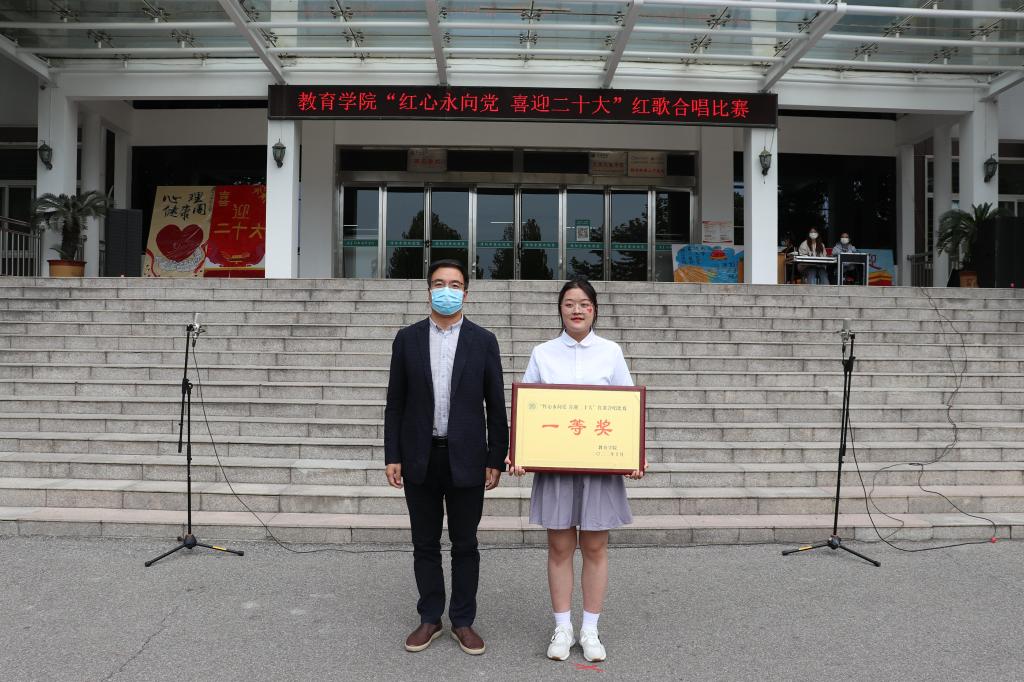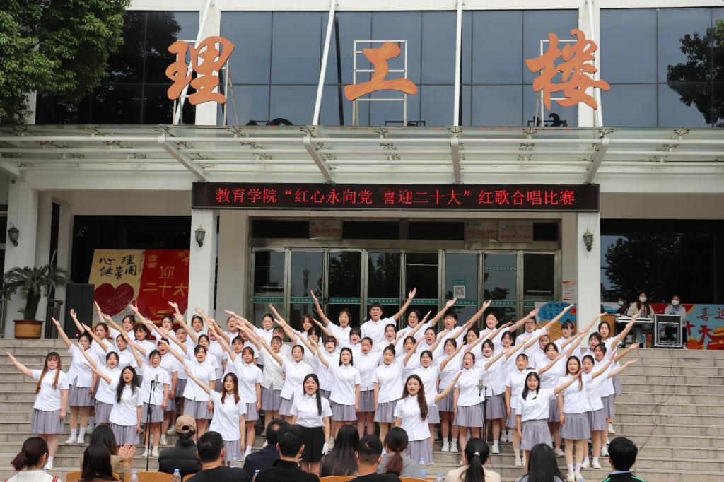 喜迎二十大,奋进新征程。这次比赛,充分展示了教育学院师生对党的二十大胜利召开的欢庆喜悦之情,用歌声唱响时代主旋律,歌颂祖国歌颂党,同时也体现了我院学生的协作能力、合作精神和积极向上的精神风貌,也很好地展现了我院学生对党的美好祝福,进一步加深了同学们对党的热爱。