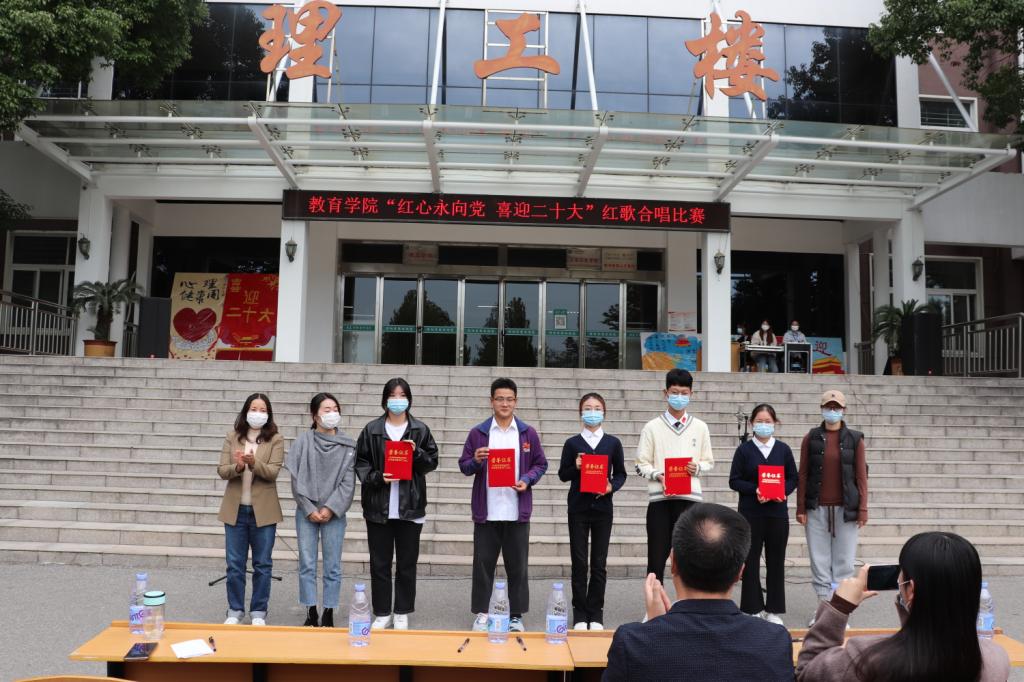 为庆祝中国共产党第二十次全国代表大会的胜利召开,10月25日中午,教育学院在理工楼前举行了“红心永向党,喜迎二十大”红歌合唱比赛。教育学院党总支书记张甲楠、学工干事郝昊、团总支书记林子瑞、学前艺术教研室主任王思,以及教师翟海燕、李晓悦等担任评委。