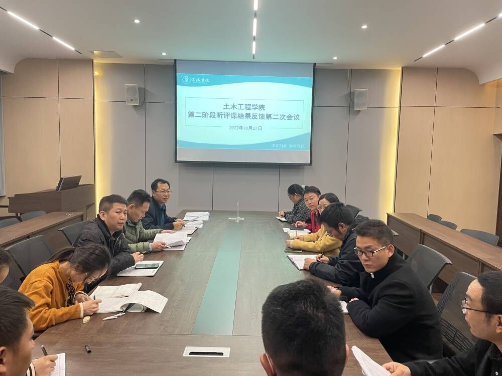 10月27日下午,土木工程学院在理工楼112会议室召开了土木工程学院第二阶段听评课结果反馈第二次会议,学院名誉院长,教学副院长杨子泉,学院听评课领导小组成员及第二阶段被听评课教师参加了会议,会议由杨子泉主持。