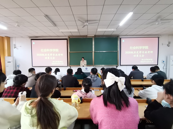 为深化历史学专业学生对考研现状的了解,帮助同学们尽快明确各自学业目标定位,10月31日下午,社会科学学院在社科楼219教室召开考研动员会。此次大会由历史学教研室王燕红老师主持,教学副院长寇博文、陈杰博士、历史学教研室骨干教师和历史学2020级拟考研同学参加会议。