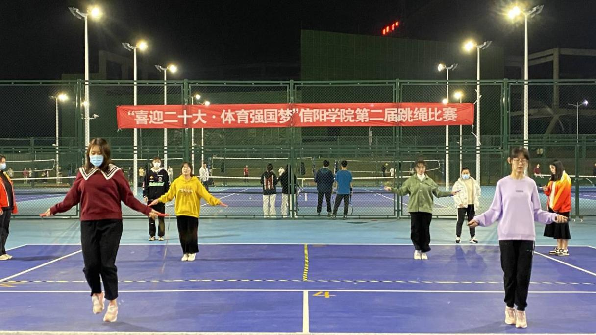 为倡导体育运动的健康理念,进一步提高学生们的体育素质,加强各学院学生之间的交流和学习,增进彼此之间的感情,信阳学院于十月底举行了第二届跳绳比赛,数学与统计学院积极组织学生参加此次比赛。