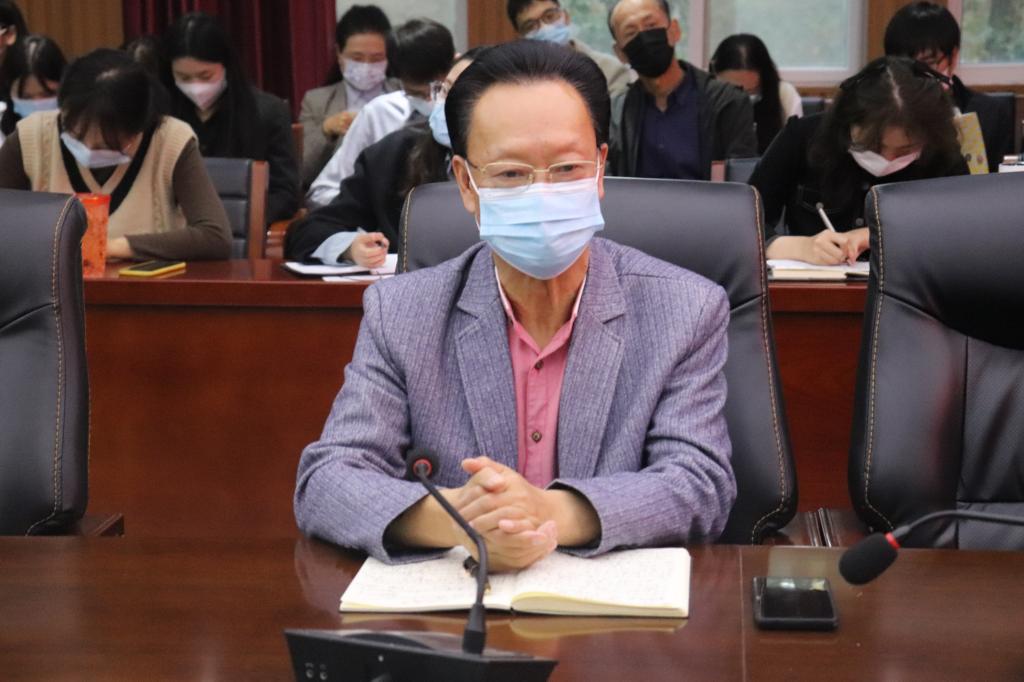 最后,毛正天院长对本次会议做总结性讲话,他表示文学院顺利走过前八周,是全体教师共同努力的成果,面对疫情防控形势,我们要一手抓好防疫,一手推进评估,安全平稳高质量推进教学评估工作。文学院是一个命运共同体,需要全体教师严格遵守疫情防控有关规定,为文学院的明天共同努力。