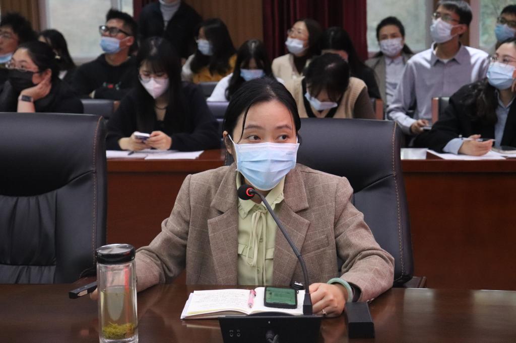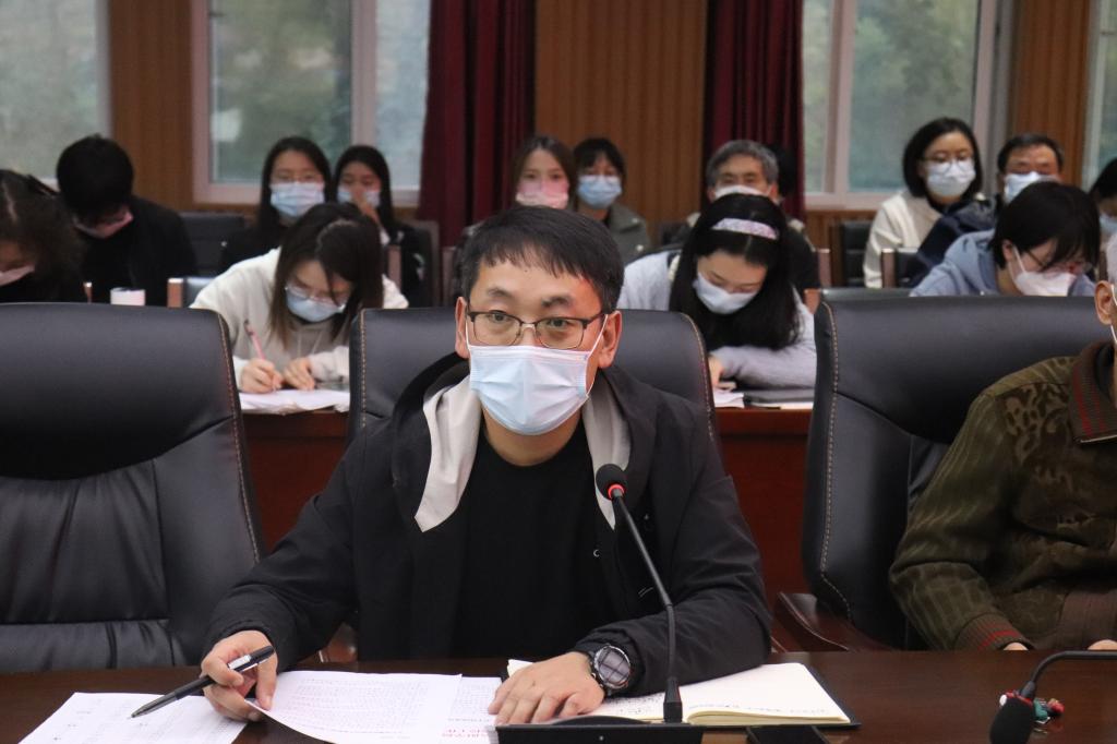 党总支书记李赟在会议中强调了新冠病毒变异体的传播性与反弹性,并分析了部分高校的管理制度的现状,他指出我院全体教职工必须严格遵守学校疫情防控规章制度,同时希望文学院全体教师党员要积极在党员先锋岗位上发光发热,以显示党员担当。
