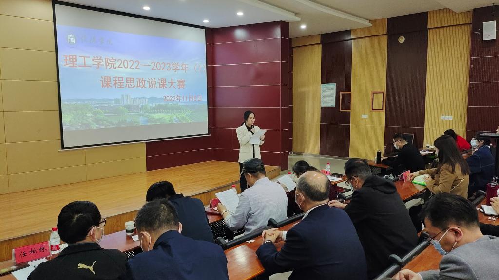 为加强我院课程思政建设,提高教师的课程思政能力,11月8日下午,我院在图书馆102教室举办了课程思政说课大赛,大赛特邀校课程思政建设工作小组组长刘志新教授,马克思主义学院黄成勇副教授,理工学院姚素梅教授、任柏林教授、李晓严副教授担任评委,理工学院全体教师观摩了本次大赛。大赛由理工学院教学副院长李晓严主持。