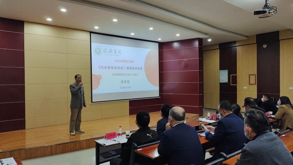 最后,肖生发院长也进行了课程思政说课展示。肖院长从课程概况与课程思政目标、教学内容与课程思政元素、教学方法与课程思政融合、教学过程与课程思政实施、教学评价与课程思政效果五个方面展示了《汽车类专业导论》课程如何进行思政说课,既是为青年老师做了课程思政的表率,又激励大家全员参与课程思政说课准备。