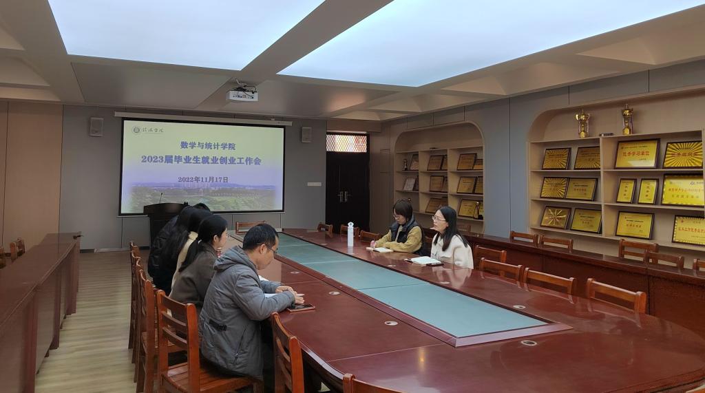 11月17日上午,数学与统计学院在数计楼407召开学生就业创业工作会,党总支副书记刘颖方、学工干事田媛和全体辅导员参加了本次会议。