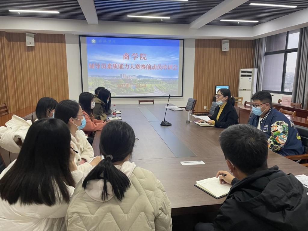 2022年11月16日下午,商学院在综合楼715会议室举办信阳学院第十二届辅导员素质能力大赛赛前动员培训会。党总支书记胡秀云、学工负责人花端阳、全体辅导员参加了此次培训,培训会由学工负责人花端阳主持。