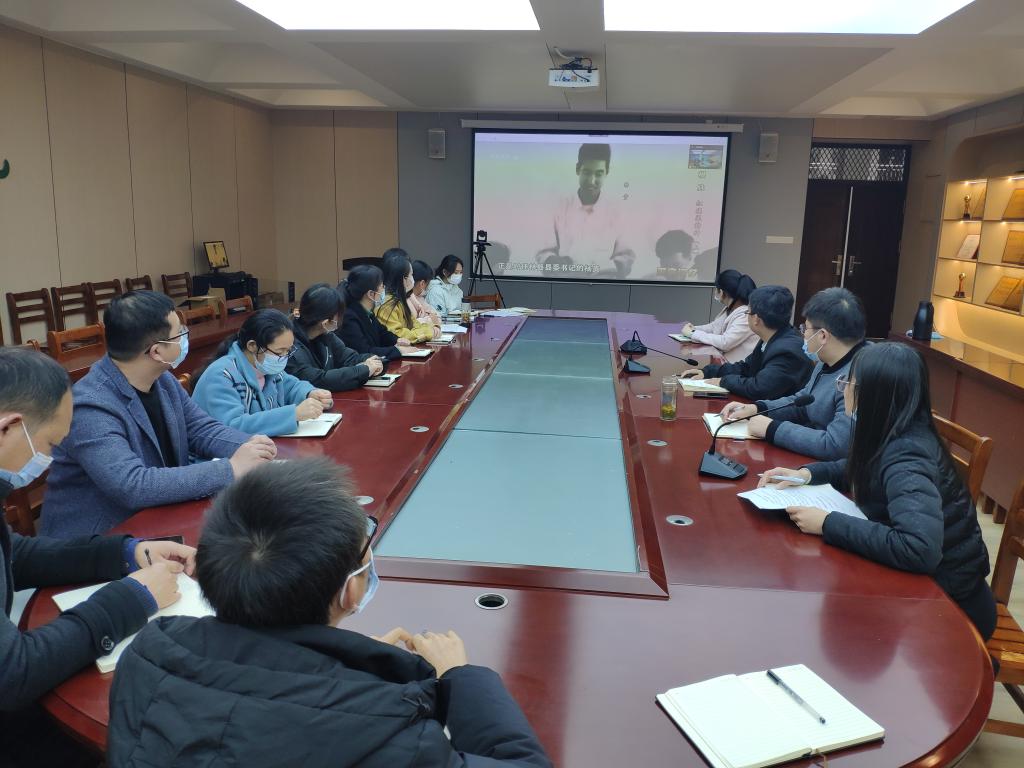 教工支部组织生活会采取线上线下相结合的方式开展,在校教师党员、居家教师党员全部参加,会议由支部书记司杰主持。与会党员首先观看了中央广播电视总台录制的时政微纪录片《定叫山河换新装——习近平总书记考察红旗渠纪实》。接着由司杰领学习近平总书记视察安阳的重要讲话精神。大家共同观看了央视大型纪录片《国家记忆》栏目播出的专题片《根脉—红旗渠精神》。观看视频结束后,教师党员代表师春灵和辅导员代表李书林分别结合自身工作发言分享学习心得。