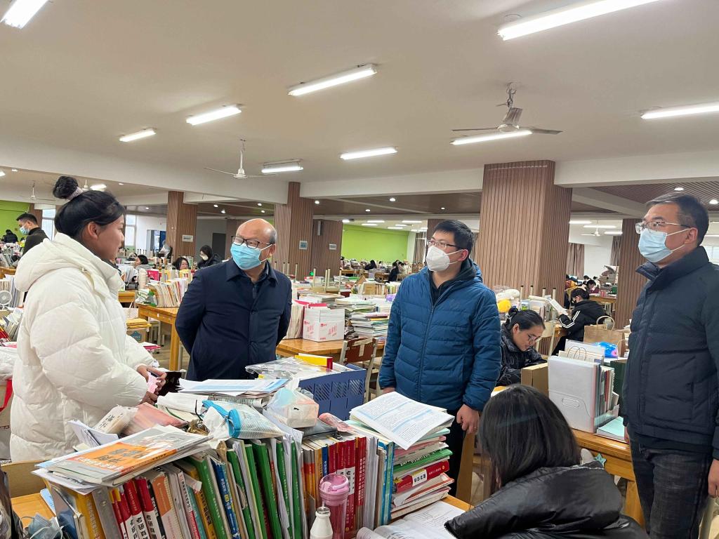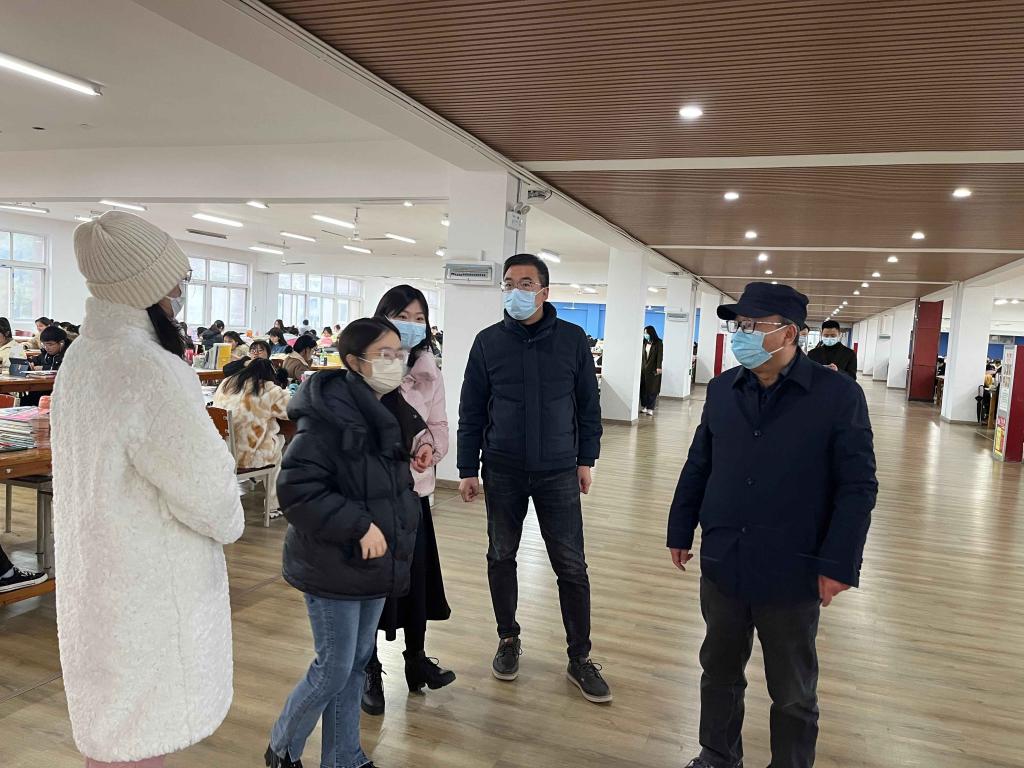 11月30日,距离2023年全国硕士研究生招生考试倒计时24天,为鼓励考研学生在最后的冲刺阶段坚定考研信念,保持学习热情,教育学院名誉院长、党总支书记张甲楠在学院学工负责人和各毕业班辅导员陪同下深入图书馆、社科楼自习室详细了解留校学生的服务保障情况,看望正在那里学习的考研学生,并与同学们亲切交谈。