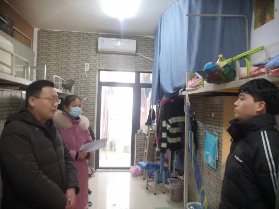 新学期伊始,为及时了解学生思想动态,推进新学期工作开展,进一步加强对学生的思想政治引领。2月12日下午,社会科学学院党总支副书记胡志国、学工干事陈苗苗带领全体学工人员走访学生宿舍。