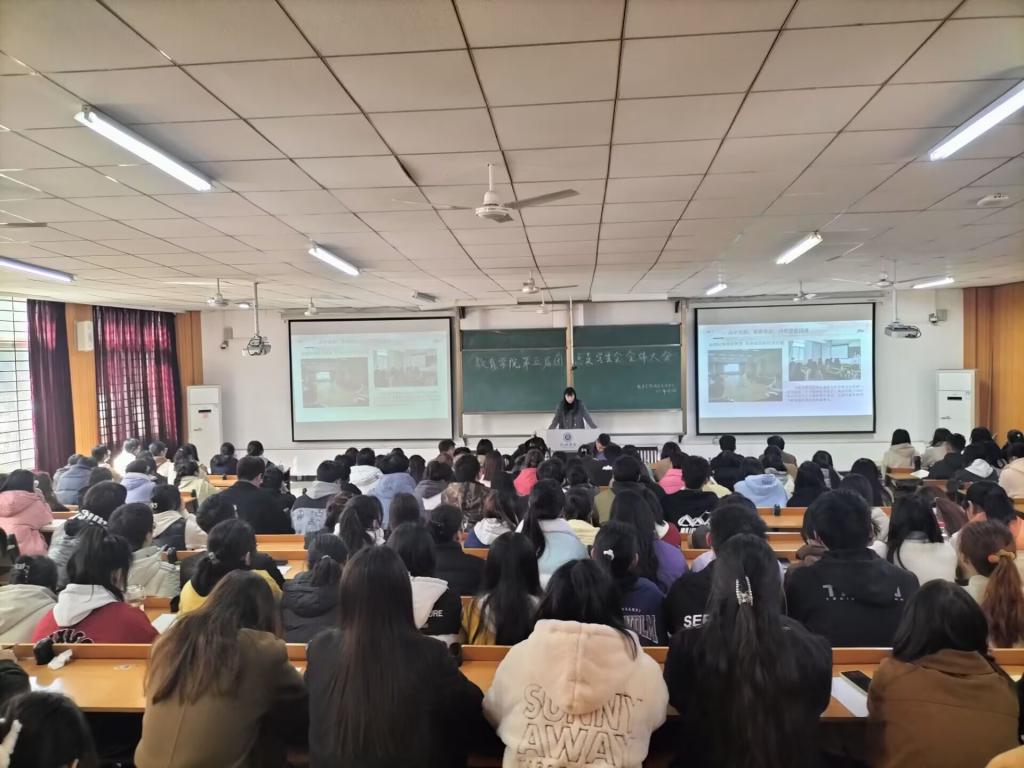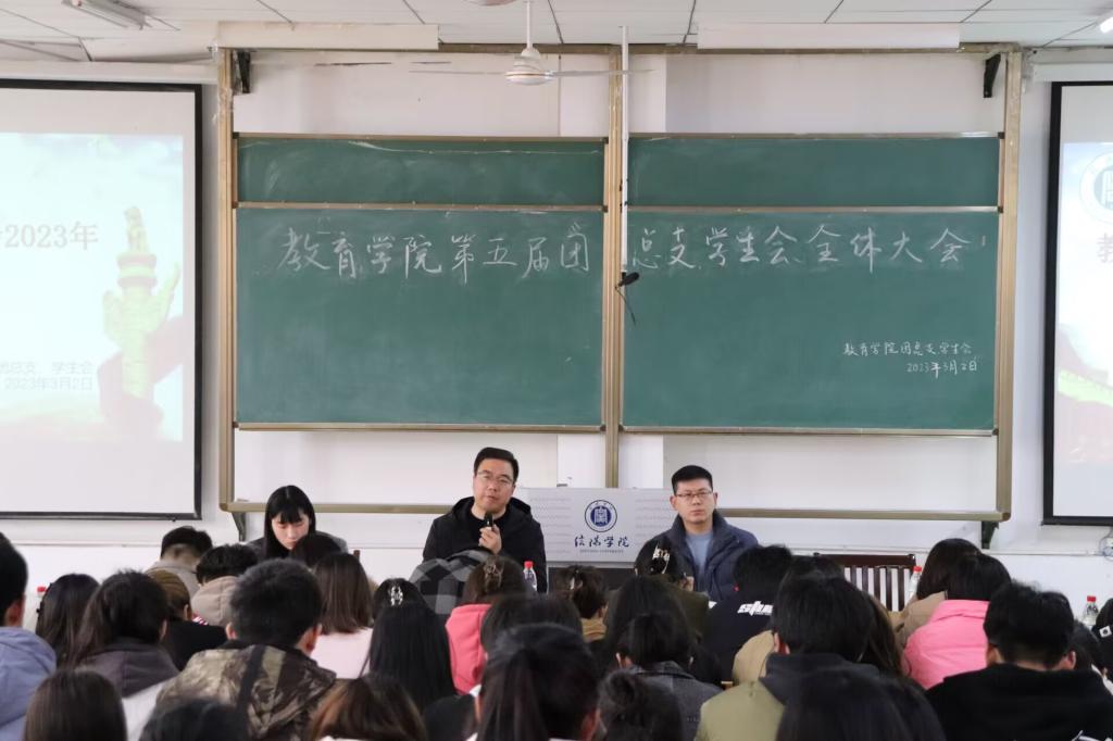 为推动我院学生会工作更好、更强、更长久的发展,保证团总支学生会在新学期能够更快地进入工作状态,同时对上一年度的工作进行总结,教育学院于3月2日在社科楼112教室举行了教育学院第五届团总支学生会全体大会。本次大会由学工干事郝昊主持,党总支书记张甲楠、团总支书记林子瑞以及各班辅导员和各团总支学生会部门代表共同出席。