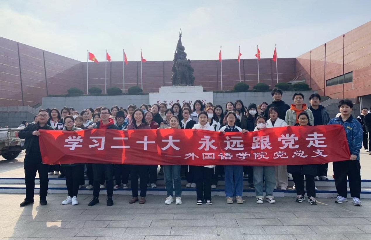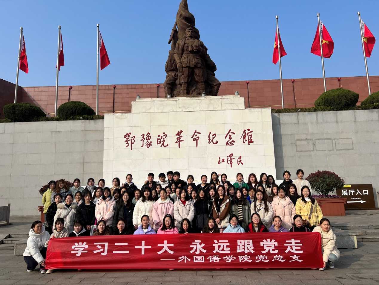 为促进师生党员更好的学习贯彻党的二十大精神,传承红色基因,赓续红色血脉,近日,外国语学院党总支组织师生党员参观鄂豫皖革命纪念馆,用心倾听红色故事,感应时代脉搏。学院党总支副书记程娇炎、宣传委员梁书荣、统战委员何珊珊、各学生支部书记及全体学生党员参与了此次活动。