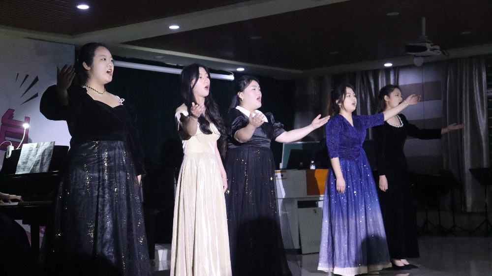 近日,“启航”声乐专场音乐会在艺术楼201教室举办。音乐学院院长王凯歌、校级督导张密、钢琴与器乐教研室主任胡世红以及音乐学院师生代表一起观看了本次音乐会。本场音乐会由声乐舞蹈教研室教师谢榭指导的声乐学生们演唱,谢榭担任指导。