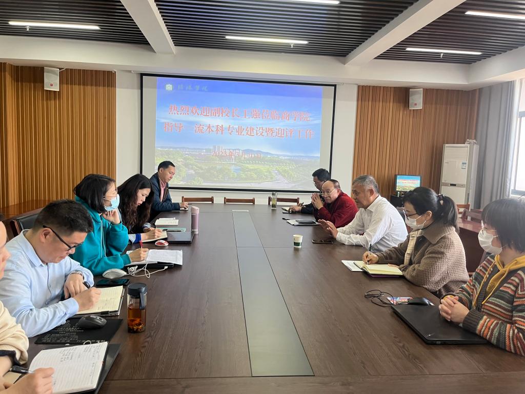 3月10日上午,副校长王强莅临商学院指导一流本科专业建设暨评估工作。商学院院长于世良、党总支书记胡秀云,副院长李毓、吴新静,学院各秘书、各教研室主任在综合楼715会议室参加了座谈。