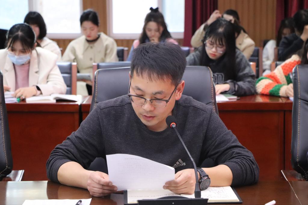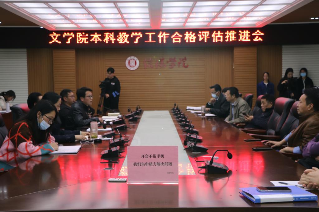 为高效推进迎评各项工作,顺利完成评估大考,3月14日下午,我院在人文楼208会议室召开了文学院本科教学工作合格评估推进会,文学院全体教职工参加了此次会议。会议由党总支书记李赟主持。