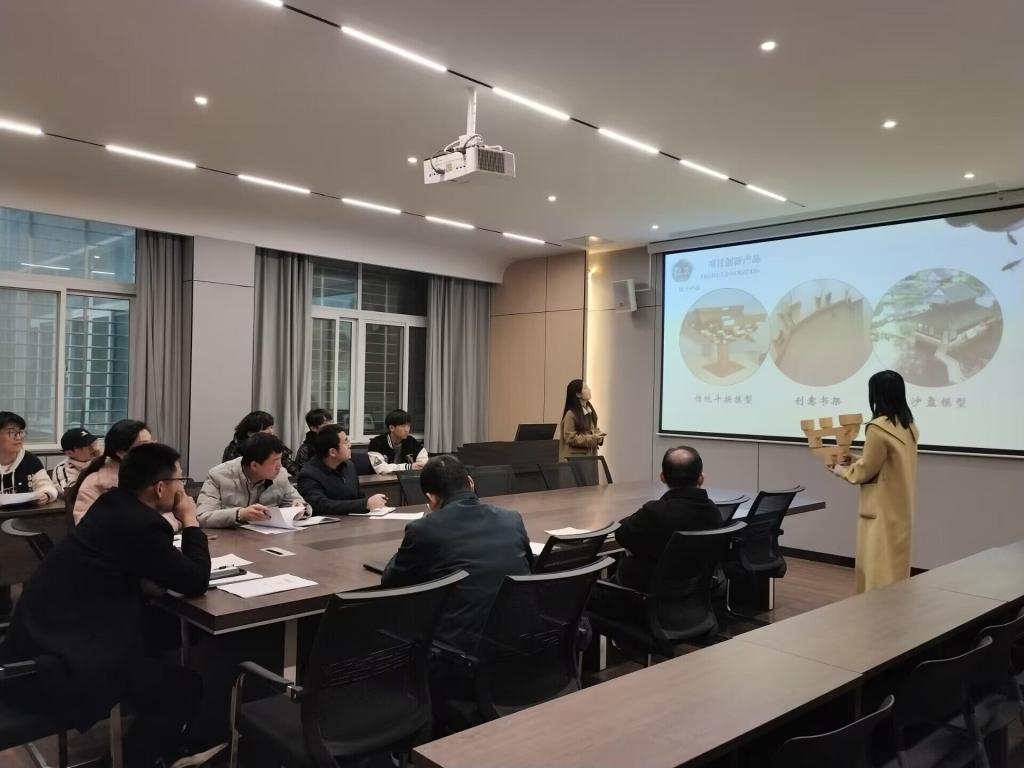 此次共有8个项目报名参赛,赛前由李静老师对比赛流程及评分标准进行介绍,参赛选手依次上台进行演讲及回答评委老师们提出的问题。比赛分为提交项目计划书、项目PPT演讲展示、5分钟现场答辩等三个环节。同学们从自己在现实生活中发现的问题出发,结合所学专业知识,展示了一个个务实且富创新性的项目。“BIM工程咨询工作室”项目,同学们把自己所学专业知识与社会实际问题相结合,致力于现代信息技术运用于建筑行业;“斗拱古建筑模艺工作室”项目,致力于把古建筑模型与传统文化结合起来,体现“民族的才是世界的”价值观念。每一个项目都展现了自己的特色,评委老师们从项目的创新性、特色、优势等方面提出了自己的修改意见,以供同学们进一步的完善提升。