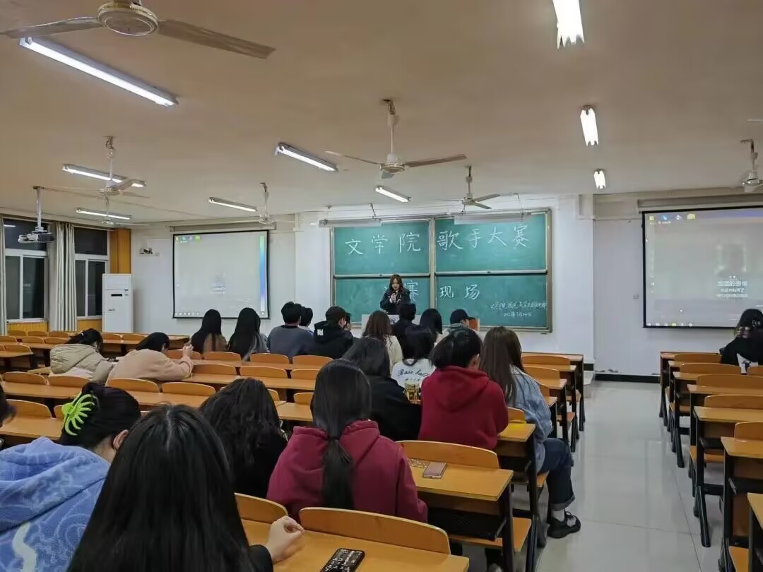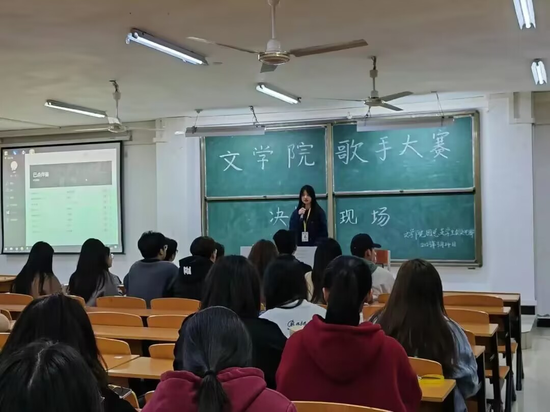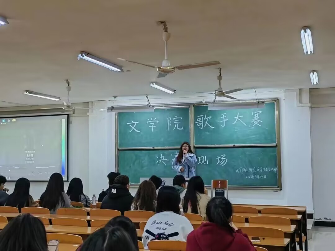 为丰富校园文化生活,推动校园精神文明建设,营造健康向上的校园氛围。3月24日晚,我院在人文楼408教室举办以“展现青春旋律,展现个性自我”为主题的文学院第八届校园歌手大赛决赛。文学院团总支书记何军华、学生会主席团、学生会文艺部和礼仪部部长担任大赛评委。本次决赛由学生会文艺部干事李泽雨主持。