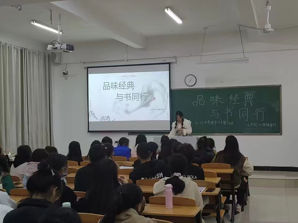 为响应4.23世界读书日,引导学生感受书籍魅力,积极营造文学院读书氛围,4月23日晚7点,我院于人文楼112教室举办主题为“品味经典,与书同行”读书交流会活动。文学院22级各班心理委员及学生代表参加此次活动,本次活动由心理健康部部长程允滢主持。