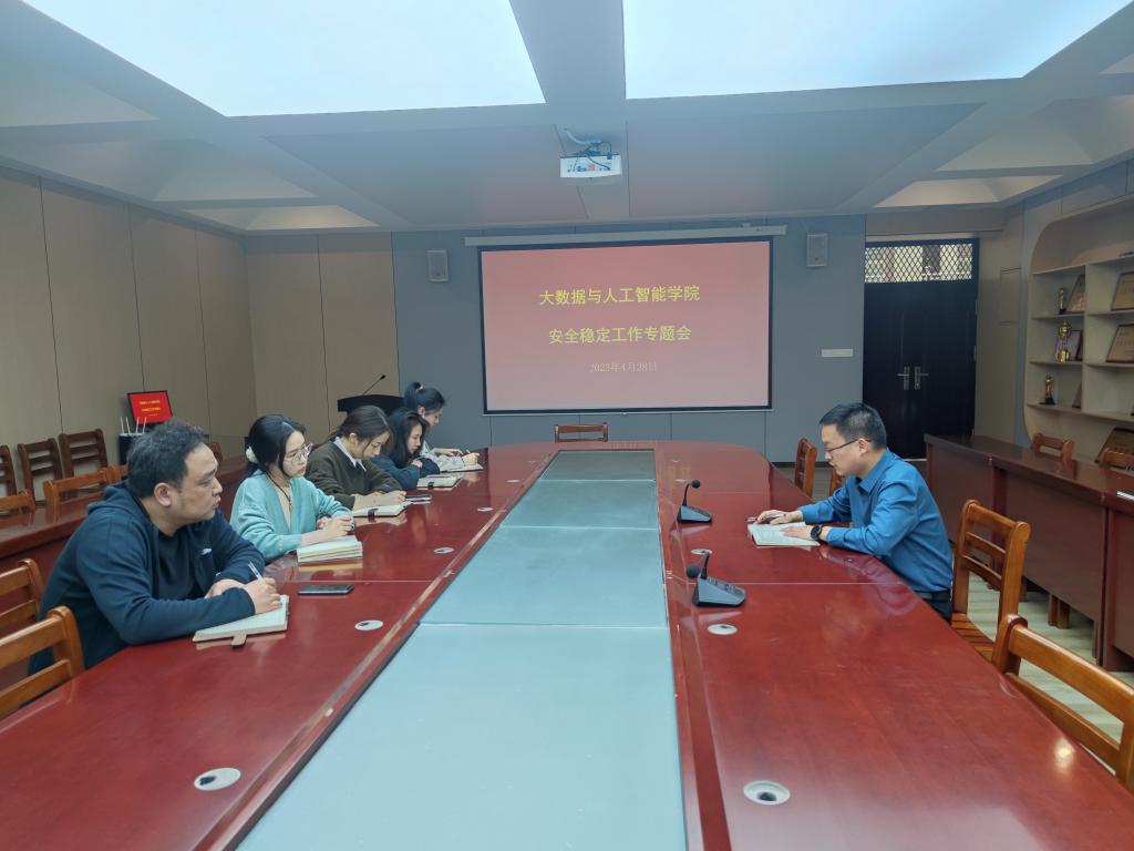 为全面贯彻落实河南省教育系统安全工作视频会议的精神,落实学校安全稳定工作会议的要求,进一步加强学生安全防范意识,打牢学生安全管理工作基础,4月28日下午,大数据与人工智能学院在数计楼407会议室召开安全稳定工作专题会,学院党总支副书记毛凤翔、行政干事司杰、学工干事鄢杰和全体辅导员参加了会议。