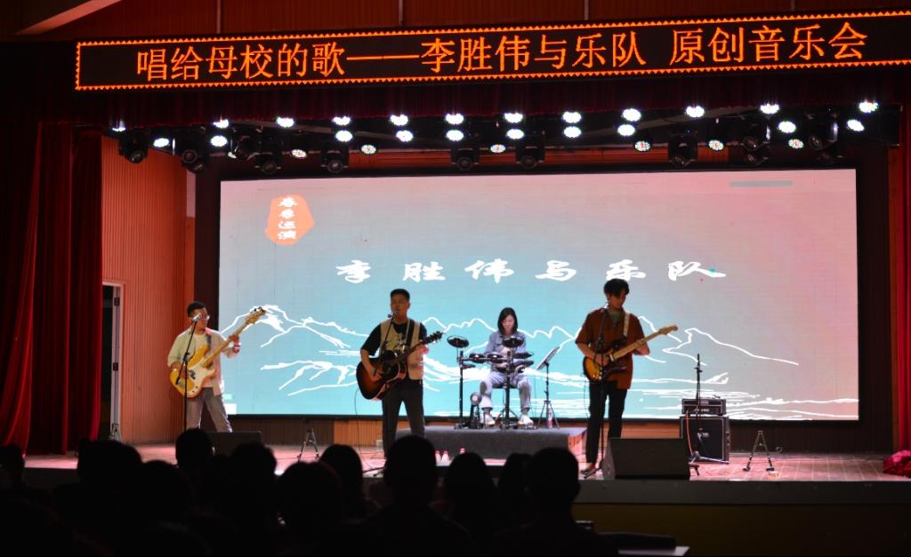 5月16日晚,在大学生活动中心,我院2014级优秀校友,原创音乐人李胜伟和乐队举办了《唱给母校的歌》原创作品音乐会。音乐学院副教授董康坦,团总支书记闫贵,青年教师代表和各学院学生代表共计200多人观看了演出。