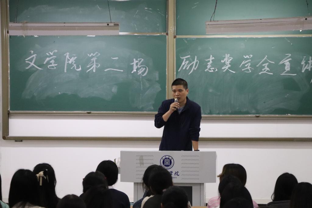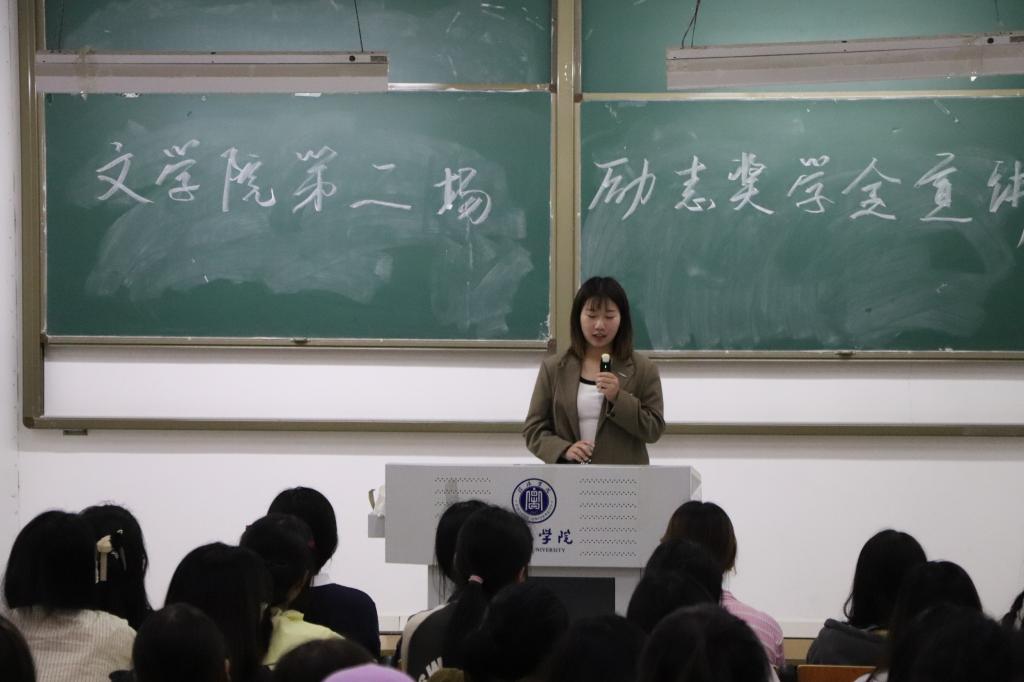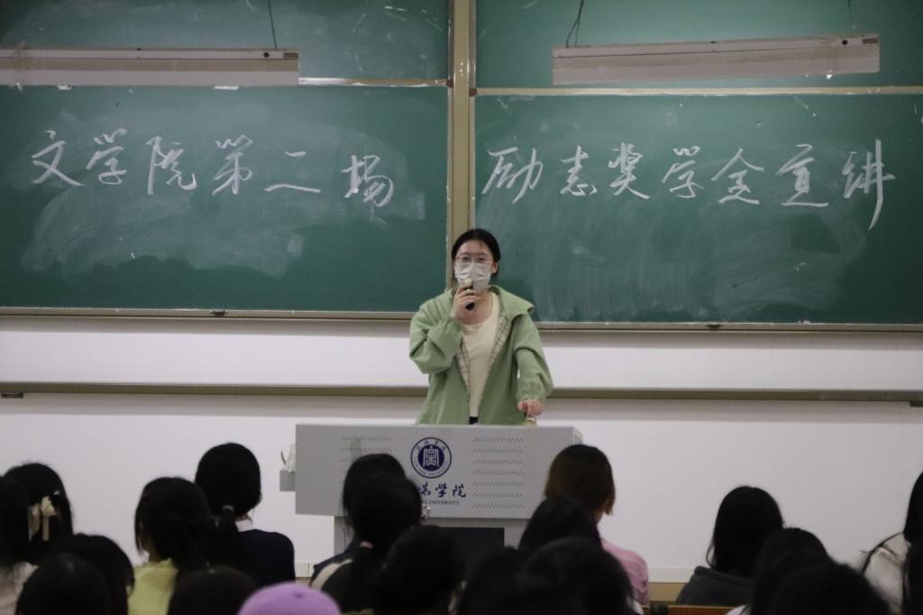 为激发文学院全体学生的学习热情,推动教育教学进一步发展,5月22日下午,我院在人文楼108教室开展文学院第二场2023年国家励志奖学金验宣讲会。本次分享会邀请2023年获得国家励志奖学金的文学院优秀学子任绎颖、云媛媛、纪珍妮、张誉远、李晓慧为22级学生分享自身经验。本次会议由左德松老师主持。