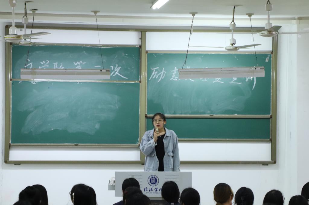 任绎颖分享了自身的学习心得。她指出“努力+行动”的重要性,强调成功之路贵在坚持,在人生的旅程中既要憧憬未来又要把握当下。同时,提出全面发展的观点,指出在大学综合发展的最佳时期,全面发展兴趣爱好,积极参加活动,保持一颗稳定向上的心。最后,祝愿大家都努力都将迎来曙光。