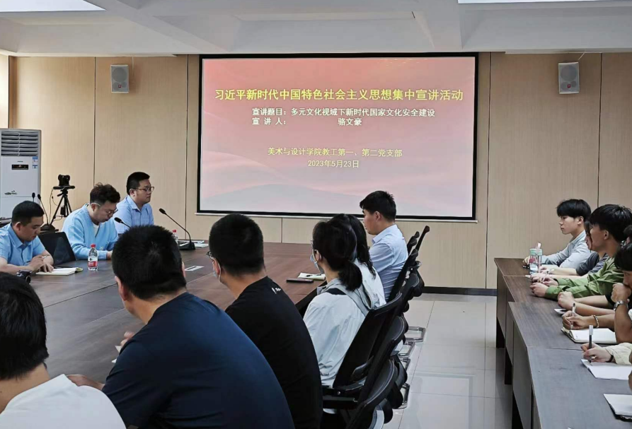 为深入推进学习贯彻习近平新时代中国特色社会主义思想主题教育,不断加强党员的政治理论学习,推动主题教育不断走深走实,学思想、强党性、重实践、建新功。5月23日下午,学院党总支在艺术楼215会议室开展习近平新时代中国特色社会主义思想宣讲活动。学院邀请学校习近平新时代中国特色社会主义思想讲习团、马克思主义学院青年教师骆文豪做宣讲报告。学院党总支书记袁军,各支部书记及党员聆听了报告,报告由周扬主持。