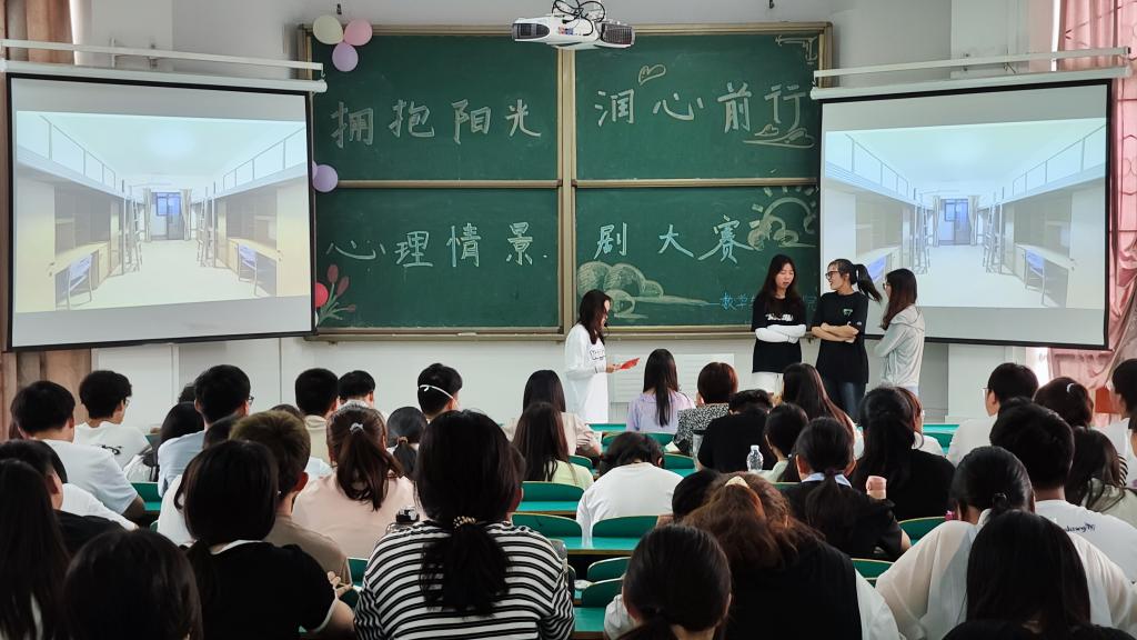 第三届“拥抱阳光,润心前行”心理情景剧大赛于5月13日-5月23日开展,由各班心理委员组织同学积极报名参与。最终确定初赛参赛作品为《光芒驱散阴霾》、《破茧》、《告别自卑》、《治愈》、《微笑时的你们,很美》、《情绪心声》等六个剧目。本次心理情景剧大赛,展现了当代大学生常见的心理困惑。各参赛队的演员们也用欢笑与泪水展现了大学生丰富的情感世界,诠释了大学生成长的心路历程。