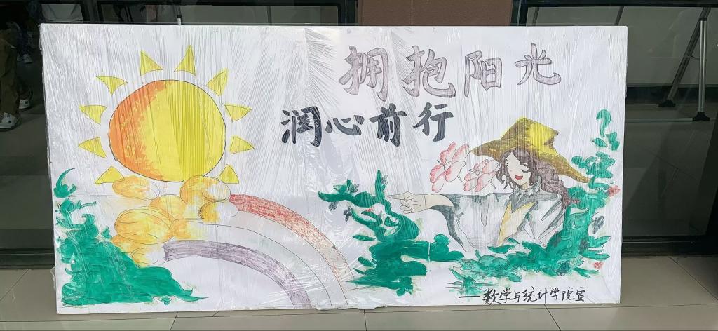 5月16日-5月25日,我院展出心理健康宣传展板,展板标明“拥抱阳光,润心前行”活动主题,并在数计楼大厅展览。