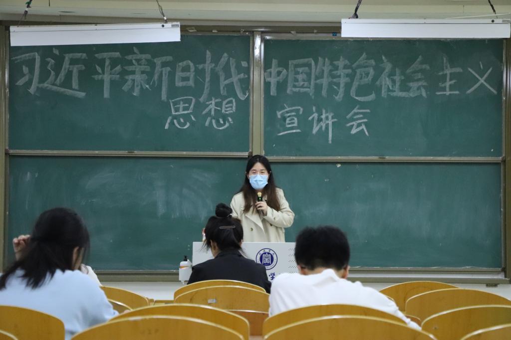 为加强学生对习近平新时代中国特色社会主义思想的认识,深入了解其蕴含的理论品格和思想风范,进一步强化政治认同、思想认同和情感认同,2023年5月26日下午,我院在人文楼310教室举办以“新时代新思想新飞跃”为主题的学习贯彻习近平新时代中国特色社会主义思想主题宣讲会。文学院党总支书记李赟和全体入党积极分子小组成员聆听了本次宣讲会。本次宣讲会由詹瑞老师主讲。