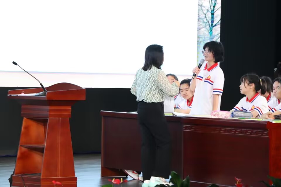 马金枝老师的课堂教学内容丰富多彩,氛围活跃有趣,与学生的互动更彰显课堂趣味性。她在课堂小结中点明希望同学们可以把平时所学的众多知识融会贯通,整理归纳,方可达到“更上一层楼”的效果。
