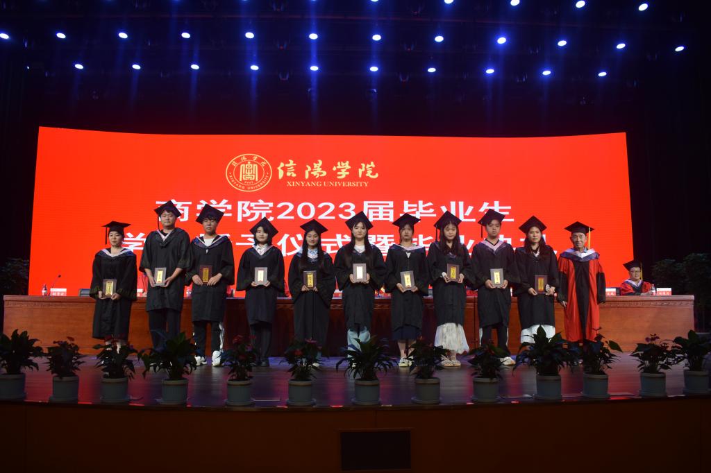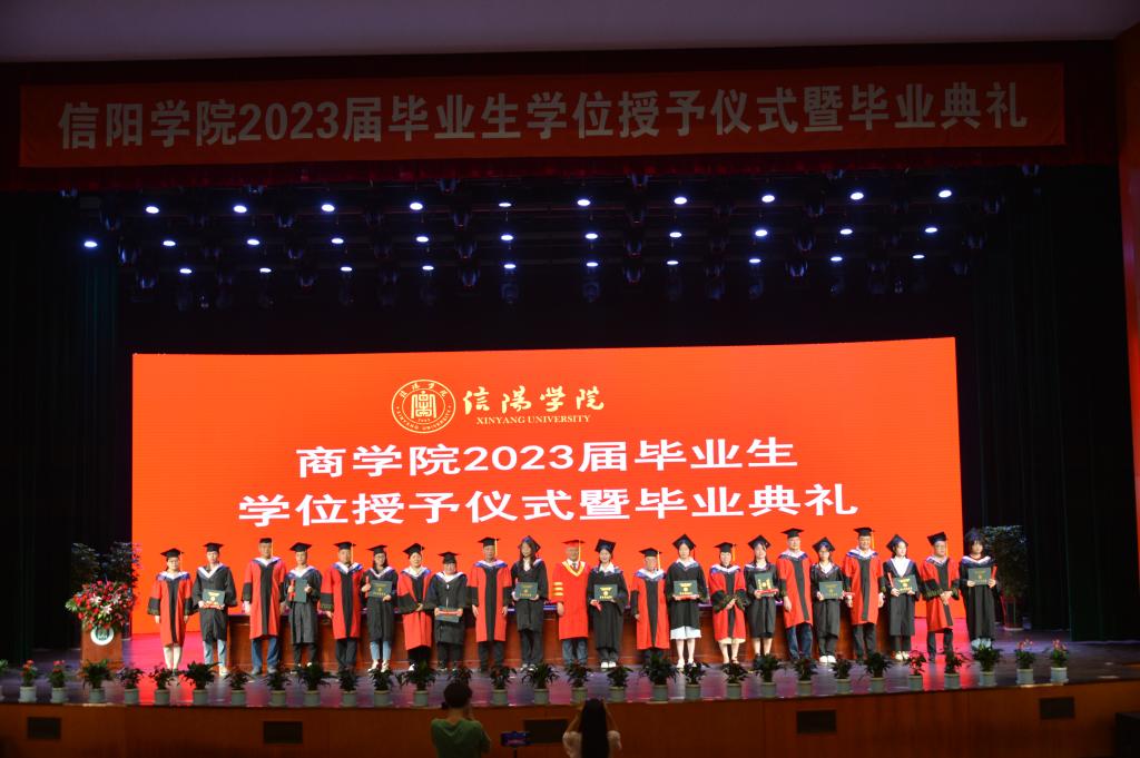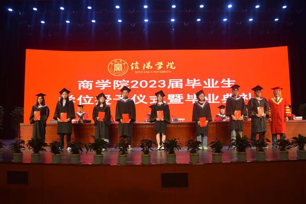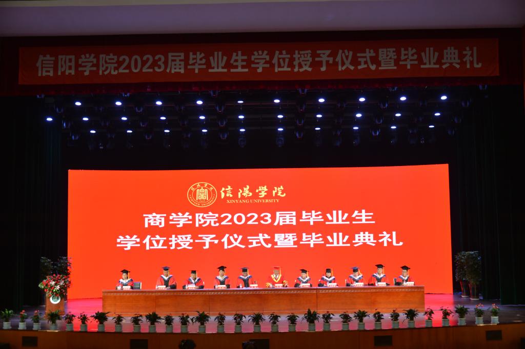 吴新静宣读了《商学院关于表彰2023届毕业生考取硕士研究生的决定》和《关于表彰2023届优秀毕业生的决定》。李毓宣读了《信阳学院关于授予2023届本科毕业生学士学位的决定》。