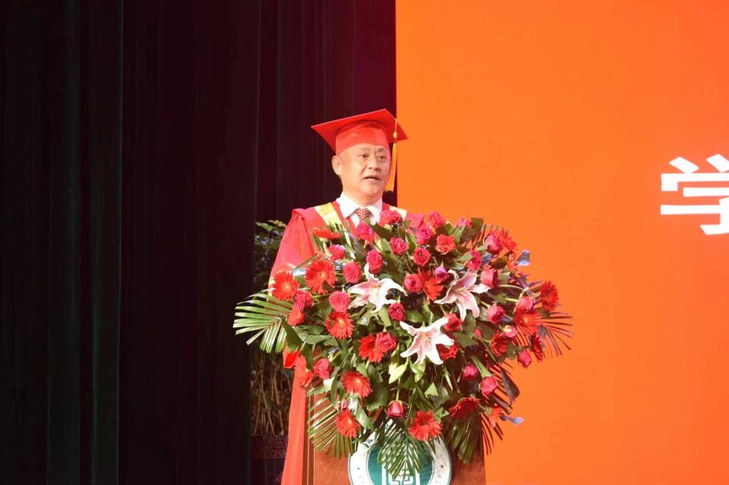 他指出,我们所处的时代,是一个梦想频现的时代。大学的学习,为你们走向社会,实现梦想、奠定了坚实的基础,但这只是一个良好开端。他希望同学们依然需要认真学习,不断实践,努力探索。要顺应新时代、新科技、新业态发展要求,立志和践行创新创业,不忘初心,不负此生,给自己开创一片更加广阔的天地。绘制“寻梦有志,逐梦有行,圆梦有恒”的创业蓝图,为实现中华民族的伟大复兴贡献自己的聪明才智。谱写“实现自身价值”人生华章。