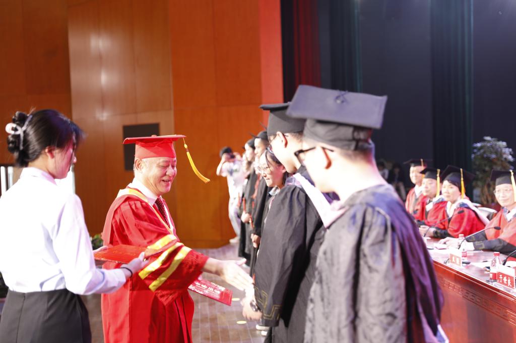 校、院领导和学院的专家教授分别为各专业毕业生授予学位,正冠拨苏。