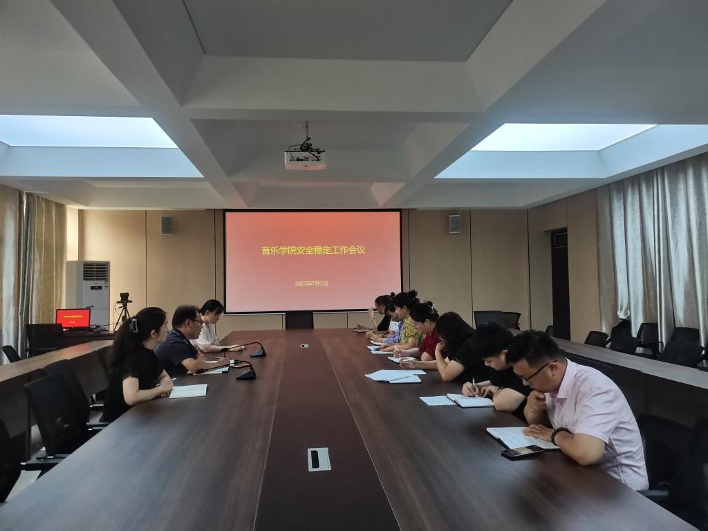 为保证暑假期间师生的人身、财产安全,进一步落实安全责任,严防各类安全事故的发生,7月1日上午,音乐学院暑假安全稳定工作会议在艺术楼215会议室召开。音乐学院党总支书记郑山峰、教学副院长杨辉、学工秘书李平、全体辅导员和教研室主任参加了会议。