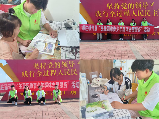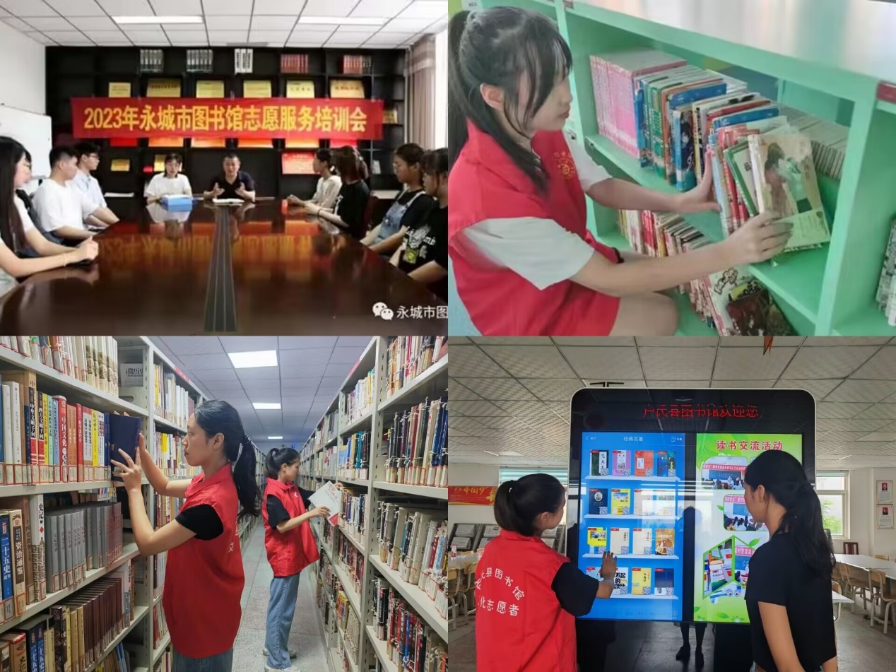广泛实施教育关爱,关心乡村基础教育服务。团队成员张同心、张桢、刘莹莹三人在7月至8月投身当地图书馆参与志愿服务工作,为提升阅读环境和促进知识传播贡献自己的力量,为图书馆的运行和读者的服务提供重要支持。张桢同学表示,作为在校大学生、作为在社会中的一员,理应学会以充满热情的态度服务社会,让大学生的力量在乡村振兴工作中留下印记,在做志愿者服务的同时,也能得到思想上的升华。