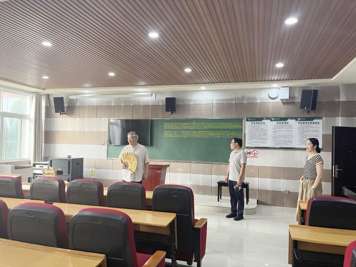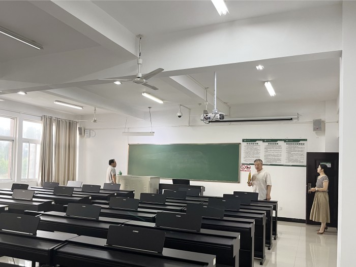 为确保开学第一天师生教学活动的顺利开展,9月2日,音乐学院院长王凯歌、党总支书记郑山峰、教学副院长杨辉一行深入学院实验室、教室,对电力、教学设备、教室卫生等准备情况进行了巡查。
